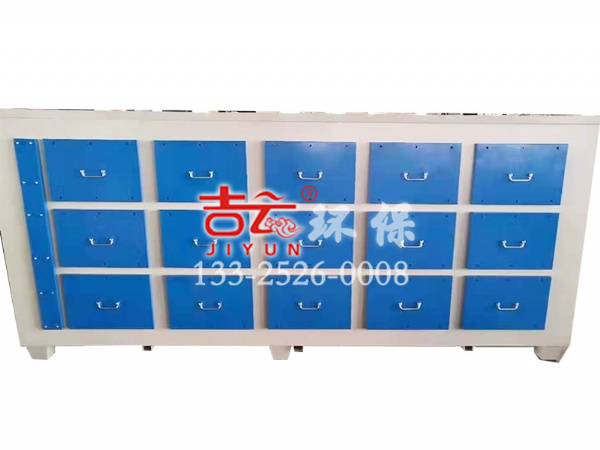 去除粉塵后的廢氣,經過合理的布風使其均勻的通過固定吸附床內的活性炭層的過流斷面,在一定的停留時間,由于活性炭表面與有機廢氣分子間相互引力的作用產生物理吸附(又稱范德華吸附),其特點是:吸附質(有機廢氣)和吸附劑(活性炭)相互不發生反應;過程進行較快;吸附劑本身性質在吸附過程中不變化;吸附過程可逆;從而將廢氣中的有機成分吸附在活性炭的表面積,使廢氣得到凈化,凈化后的潔凈氣體通過風機及煙筒達標排放。